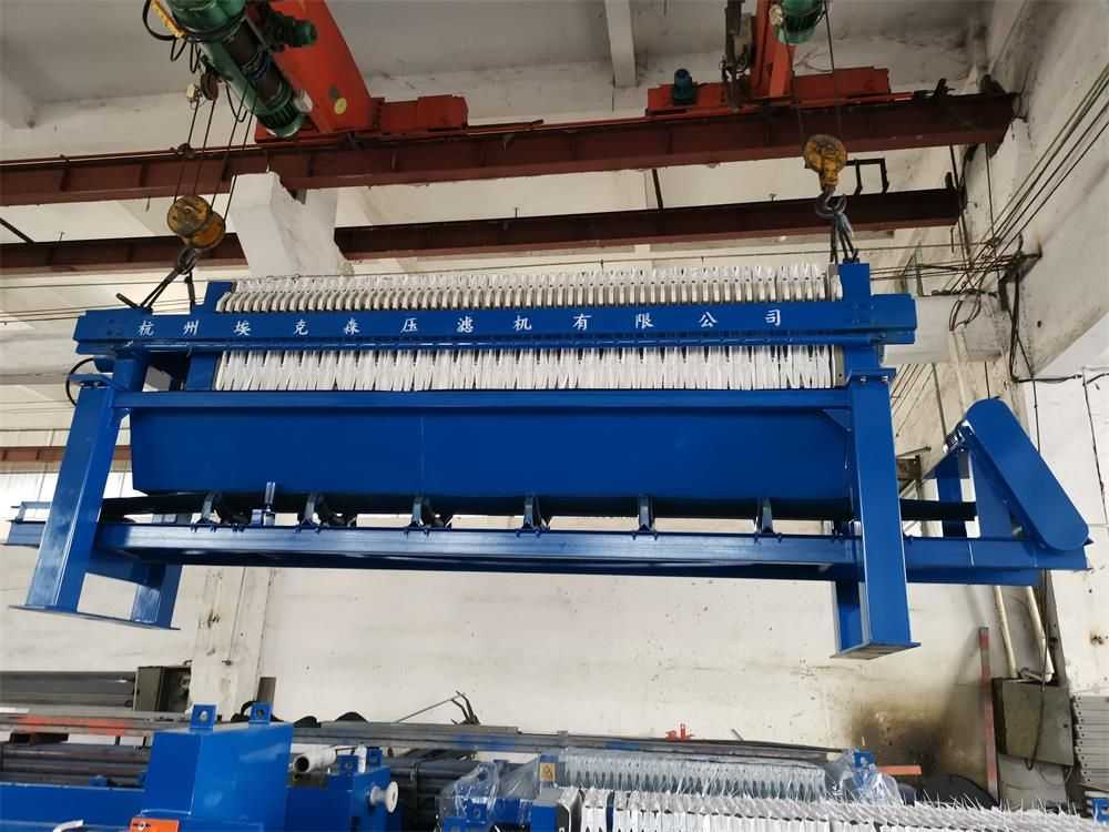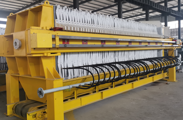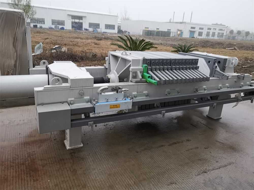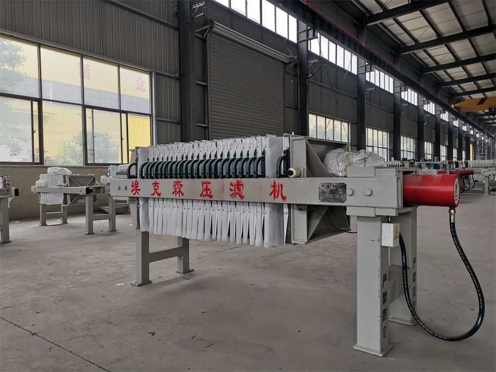 隔膜壓濾機和常規(guī)箱式壓濾機的主要區別在于,在濾板的兩側都增加了兩個彈性膜(復合橡膠膜是一個整體式膜。在操作期間,當進料完成時,將高壓流體介質注入膜中,并使整個膜膨脹以過濾濾餅,以進一步使濾餅脫水,這是壓力過濾。在隔膜壓濾機運行期間,液壓系統使用液壓油作為壓力載體來傳遞內部壓力。